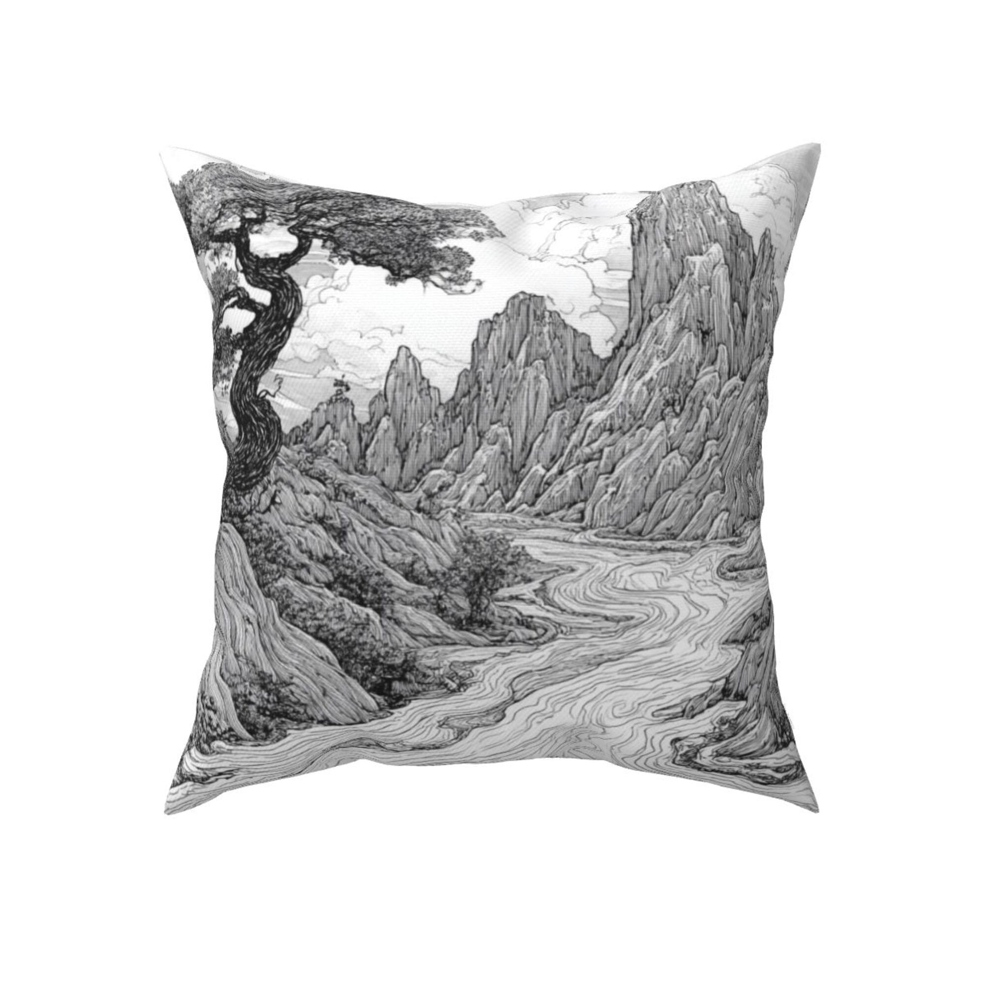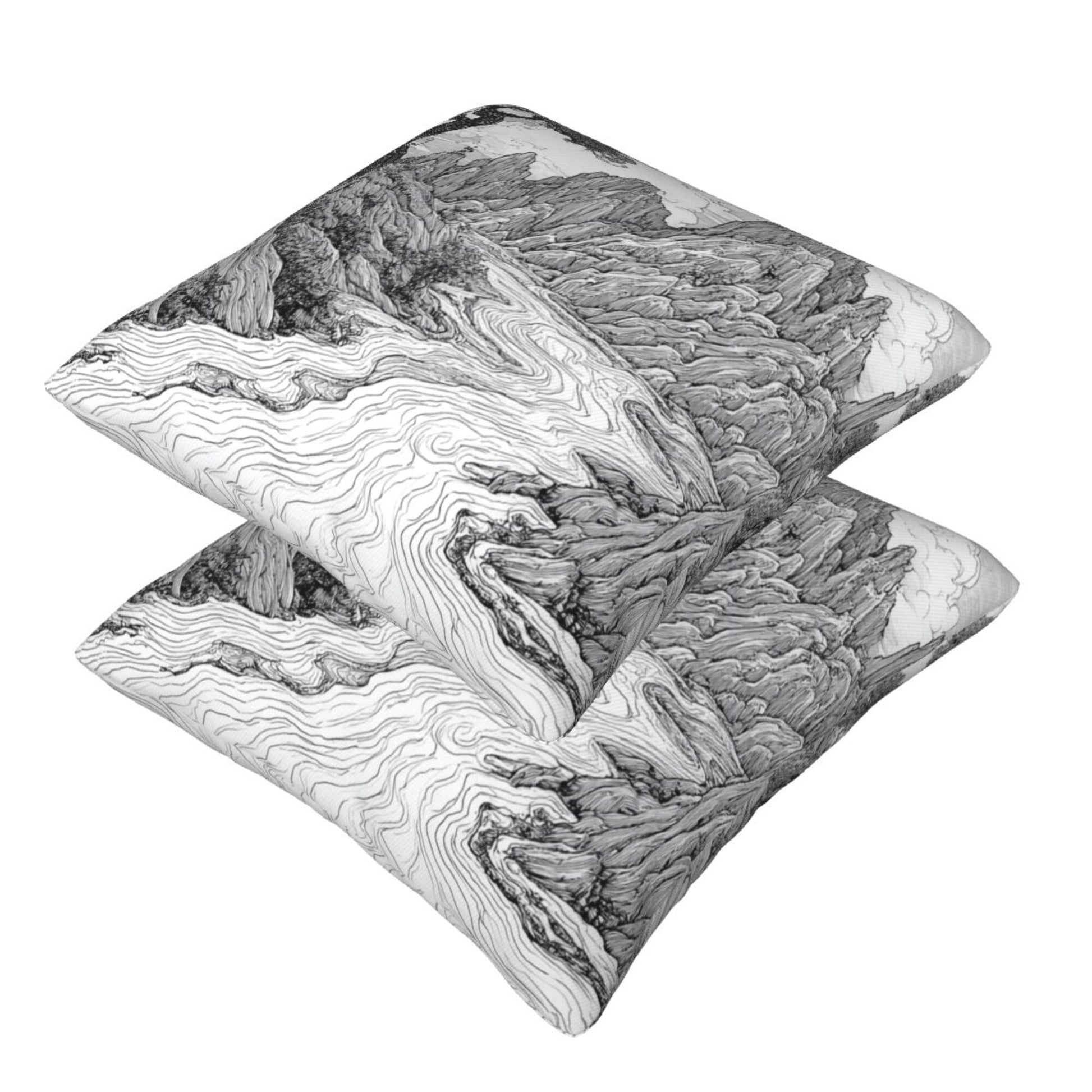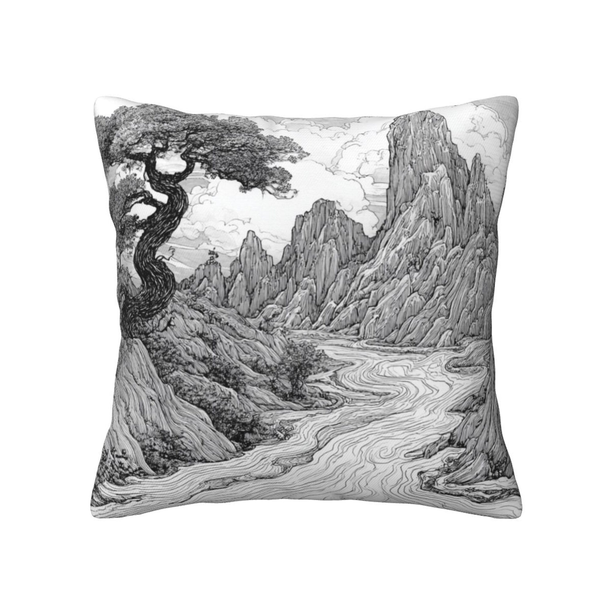 Immerse your space in timeless elegance with this set of two 16"x16" pillow covers, inspired by traditional Chinese landscape painting. The intricate black-and-white linework captures a serene natural scene: ancient pines, rugged mountains, flowing rivers, and drifting clouds—evoking a sense of tranquility, wisdom, and poetic beauty rooted in Eastern aesthetics.